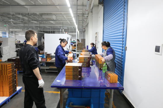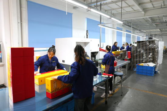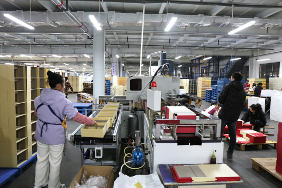 來(lái)到佳藝公司生產(chǎn)車(chē)間,工人們正全神貫注地操作設(shè)備。近年來(lái),公司在改革創(chuàng)新方面不斷發(fā)力,優(yōu)化生產(chǎn)流程,提升產(chǎn)品質(zhì)量。去年,公司引進(jìn)一臺(tái)高速覆膜機(jī),使得生產(chǎn)效率大幅提升。開(kāi)工當(dāng)天,公司生產(chǎn)了24000個(gè)成品包裝盒,1月份產(chǎn)量累計(jì)達(dá)58萬(wàn)個(gè)。