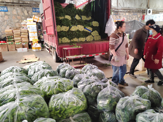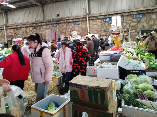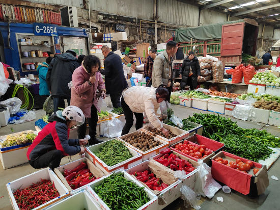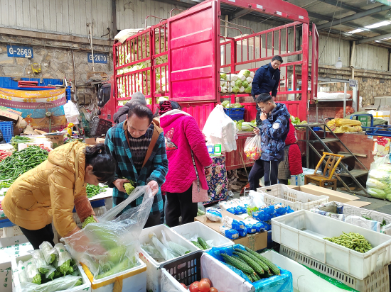 春節(jié)期間,為保障市民生活必需品不斷供,許多商戶默默堅(jiān)守崗位。蔬菜區(qū)和糧油區(qū)的部分商戶早在農(nóng)歷正月初三、初六就已開(kāi)始營(yíng)業(yè),全力保障物資供應(yīng)。劉軍蔬菜的負(fù)責(zé)人表示,他們從初三就開(kāi)始營(yíng)業(yè),此前日均進(jìn)貨量和銷(xiāo)售量穩(wěn)定在30噸左右,開(kāi)市后,進(jìn)貨量增至45噸左右,市場(chǎng)需求旺盛。