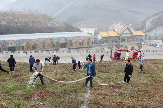 酒城的春天,細(xì)雨如煙,山巒隱現(xiàn),空氣中彌漫著泥土的芬芳和草木的清香。上午9點(diǎn)45分,參與植樹的干職員工在三峽龍泉湖旅游風(fēng)景區(qū)東南亞風(fēng)情兒童樂園集結(jié),明確責(zé)任分工,劃定責(zé)任區(qū)域,共同開展義務(wù)植樹,攜手打造生態(tài)酒城的綠色新貌。